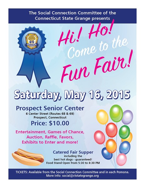 | APRIL 19, 2015 -- The Social Connection Committee is hosting a Fun Fair on May 16th at the Prospect Senior Center, 6 Center Street (Routes 68 & 69) in Prospect.
